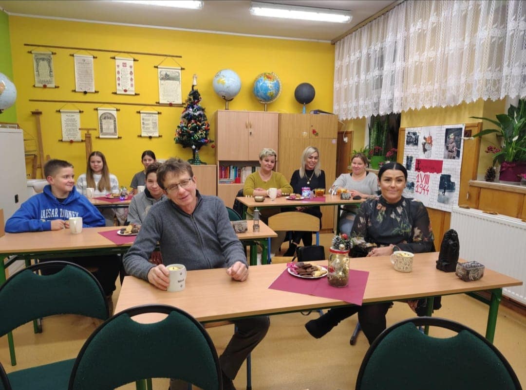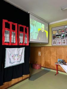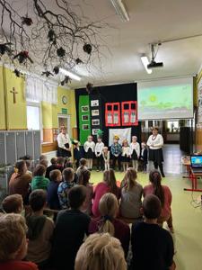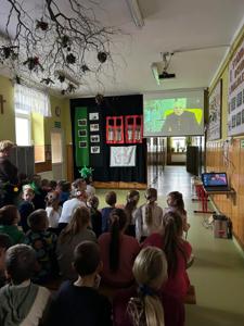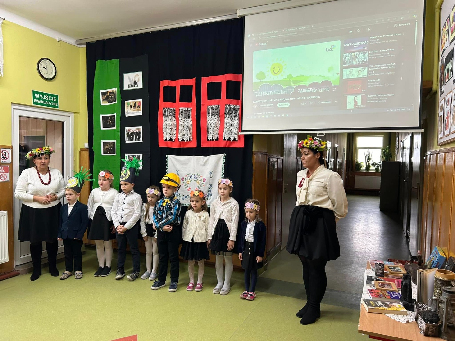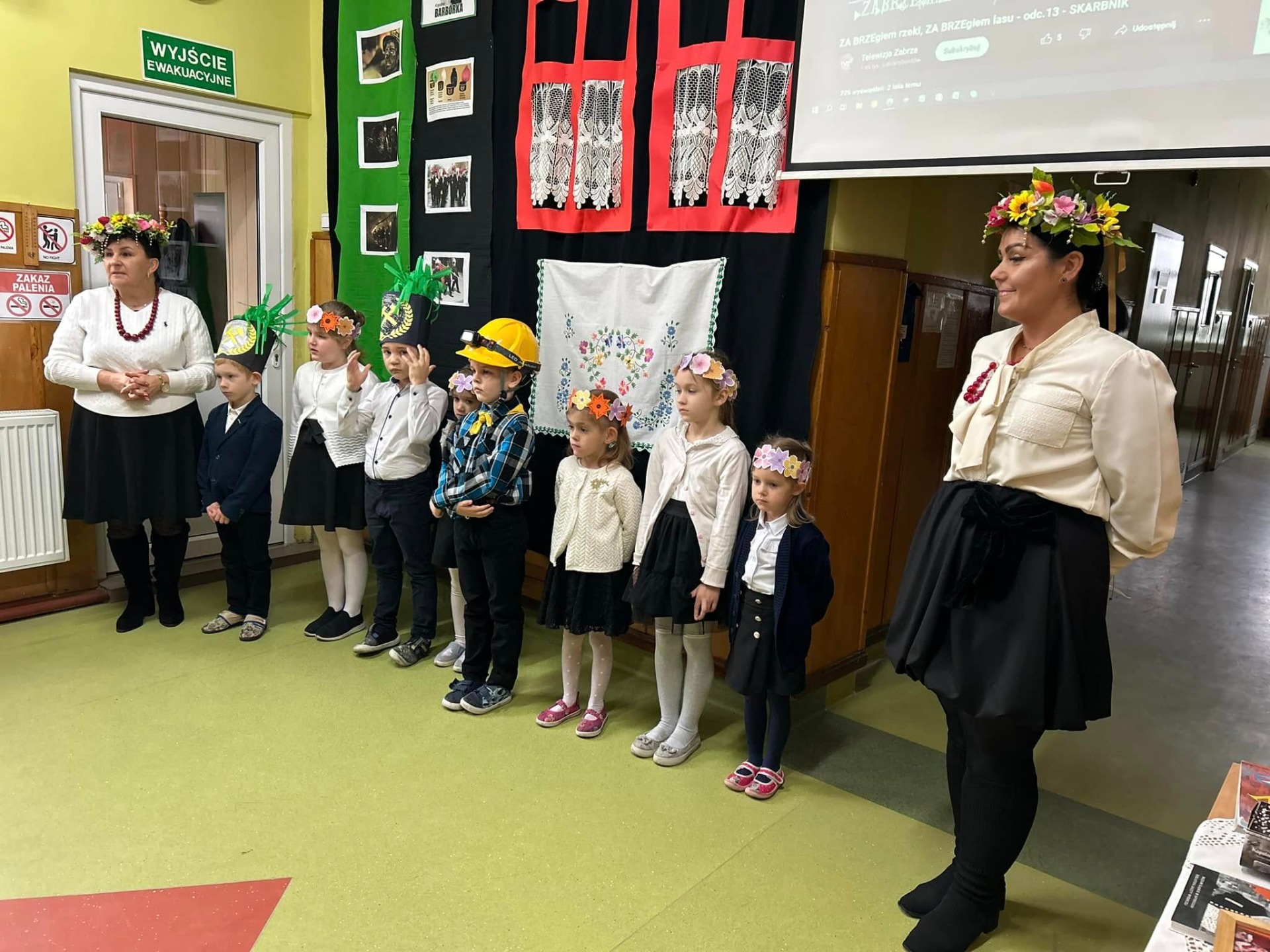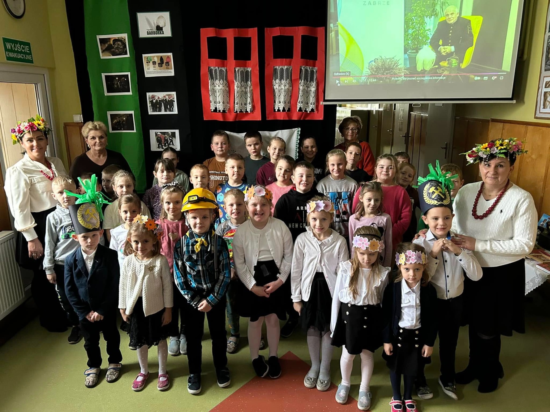 Pierwsza część świętowania odbyła się dzięki najmłodszym dzieciom z naszej szkoły. Zeróweczka wprowadziła nas w tematykę Barbórki piękną częścią artystyczną. Następnie obejrzeliśmy bajkę pt. „Skarbnik” opowiedzianą przez Ślązaka Pana Edwarda Jon. To pouczająca opowieść, która przybliża młodym widzom tematykę górnictwa i kultury związanej z tym zawodem.