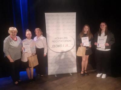 Dnia 25.04.2025 r. w Kinie Nawojka w Lipnie odbył się V Powiatowy Konkurs Recytatorski „SŁOWO i JA”. Tematem konkursu była: "Wiosna w poezji". Naszą szkołę reprezentowały: Zosia Wajer, Lena Trzcińska oraz Gabrysia Wachowska. Werdyktem jurorów dwie nasze uczennice stanęły na podium, zajmując odpowiednio: II miejsce – Zosia Wajer, III miejsce – Lena Trzcińska.