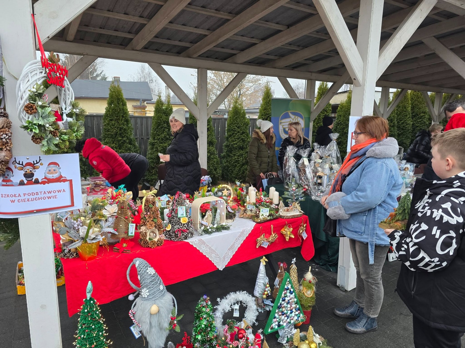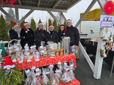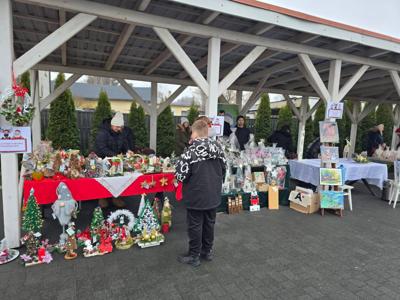W Kikole po raz kolejny zagościła prawdziwa świąteczna magia. Sobotni Kiermasz Mikołajkowy, odbywający się pod patronatem Burmistrz Kikoła Renata Gołębiewska, przyciągnął wielu mieszkańców, którzy przyszli poczuć klimat zbliżających się świąt i wesprzeć lokalnych twórców. Na odwiedzających czekało 14 różnorodnych stoisk. Swoje pięknie przygotowane wyroby zaprezentowały wszystkie gminne szkoły i przedszkole z Kikoła, Dzienny Dom Pomocy, Koło Gospodyń Wiejskich „Suminianki”, ŚDS „Koniczynka” z Sumina, WTZ z Lipna, a także wystawcy zewnętrzni. Rękodzieło, ozdoby, domowe wypieki i pomysłowe upominki tworzyły kolorową, pachnącą świętami przestrzeń, w której każdy mógł znaleźć coś wyjątkowego. Ciepły, rodzinny nastrój kiermaszu dopełniły kolędy w wykonaniu pań z Klubu Seniora „Jesienny Liść”. Ich śpiew poruszył serca i dodał wydarzeniu uroku, przypominając o pięknie wspólnego kolędowania. Nie zabrakło także najbardziej wyczekiwanego gościa – Świętego Mikołaja, który z uśmiechem obdarowywał dzieci upominkami i chętnie pozował do zdjęć. Jego obecność wprowadziła najmłodszych w prawdziwy, bajkowy nastrój.